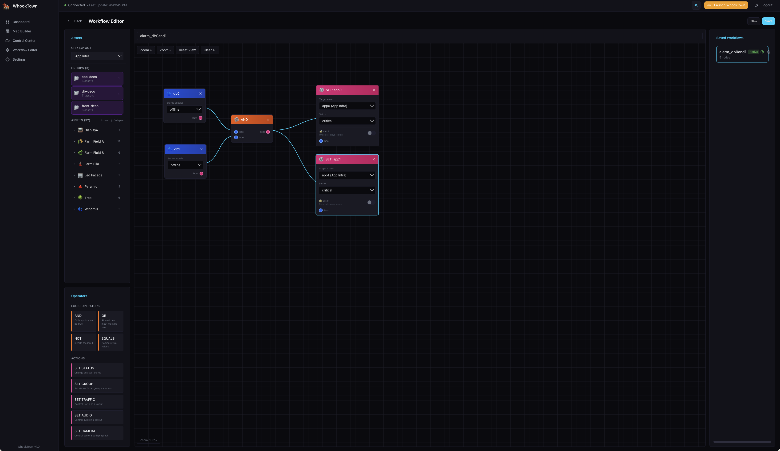 Created from action operators. Configure: - Target Asset: Which building to modify - Set to: New status value - Latch: Lock output (see below)
